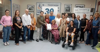 NIEVES MÁRQUEZ, PRESIDENTA DE COCEMFE SEVILLA ENTREGA EN COCEMFE BADAJOZ MATERIAL ORTOPROTÉSICO PARA EL SERVICIO DE PRESTAMO Y DONACIONES